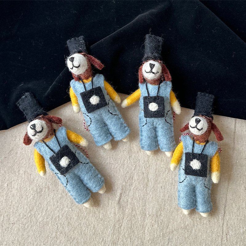 Check out these adorable felt dog creations! They’re handmade with soft felt, featuring super cute designs: some wear denim overalls and tiny hats like little photographers, while others sport sweet pink sweaters with heart patterns and carry flower bouquets. Each piece is full of charm and detail, perfect as cute decorations or lovely gifts for dog lovers—they’ll instantly brighten up your day with their fuzzy, whimsical vibes!