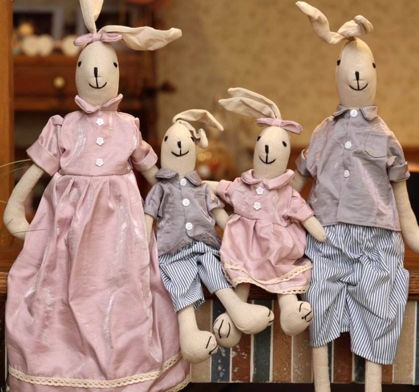 Rabbit family of fabric dolls