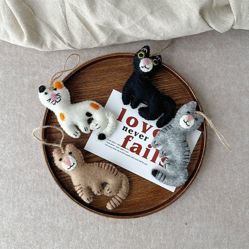 These are totally adorable felt cat ornaments! Just look at these fuzzy kitties—each one’s got its own cute style, like the black cat with big googly eyes, the spotted white one, and the cozy gray tabby. Made from soft felt and with little jute strings for hanging, they’re perfect for adding a whimsical, cat-loving charm to your tree, bags, or any cozy space. If you’re a cat person, these little guys will steal your heart in a second!