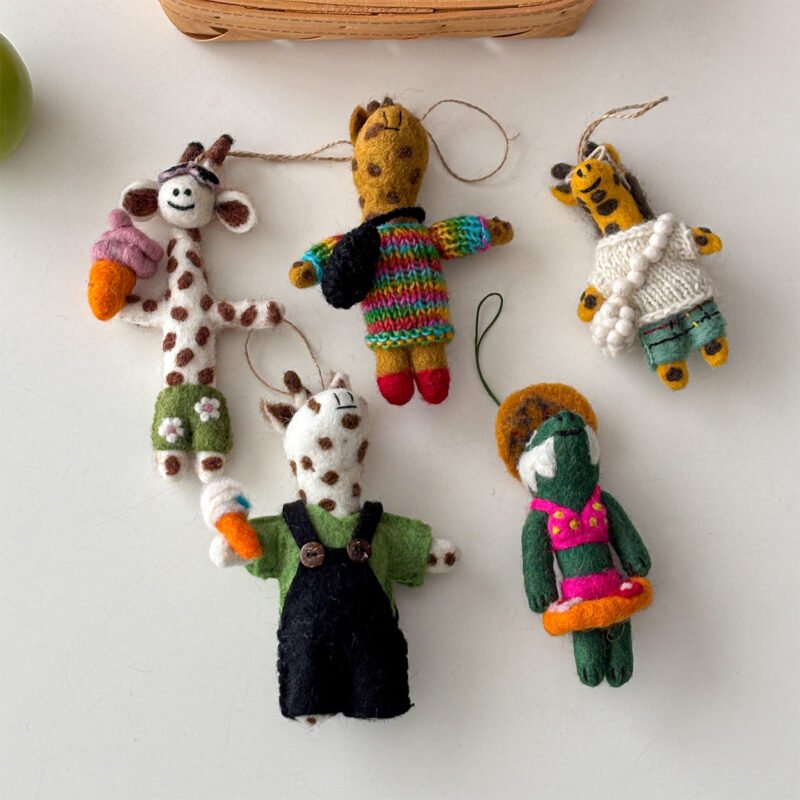 Made from soft wool felt, each elephant comes in bright, cheery colors and has a tiny bell for extra charm.