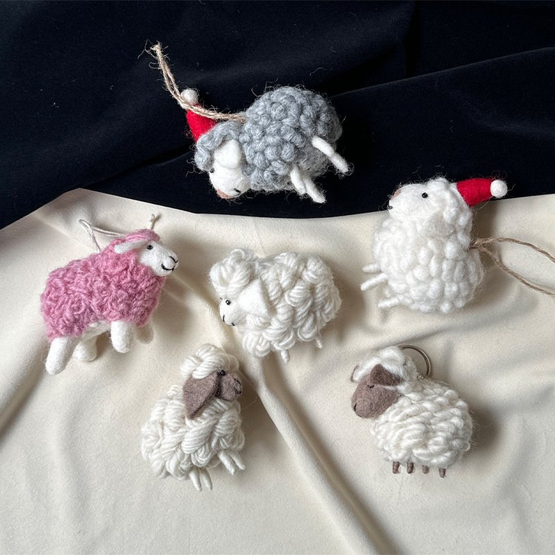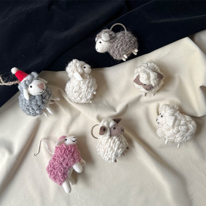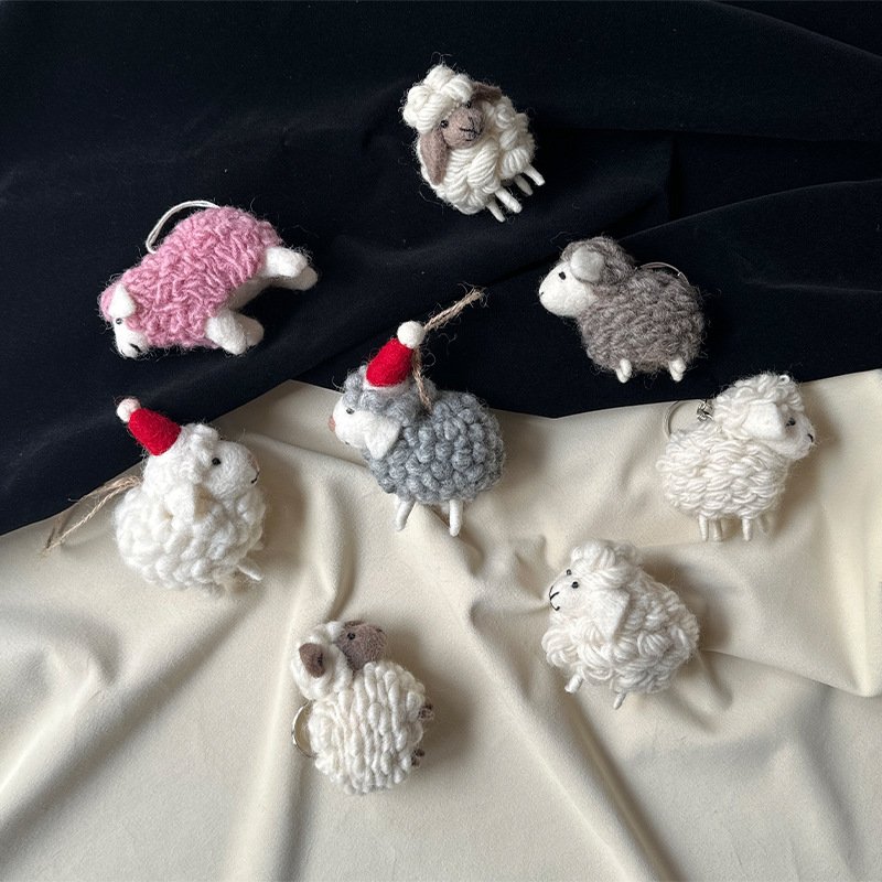 These wool felt sheep keychains are super cute! Made from soft wool felt, each sheep has a fluffy, cozy look—some even wear Santa hats for extra charm. Perfect for adding a lovely touch to your keys or bags!