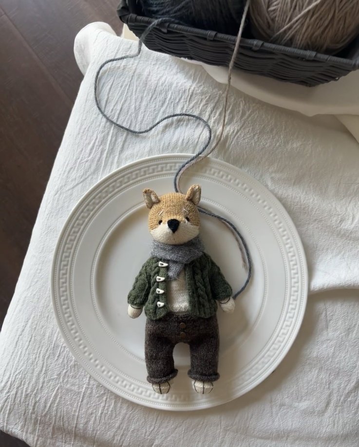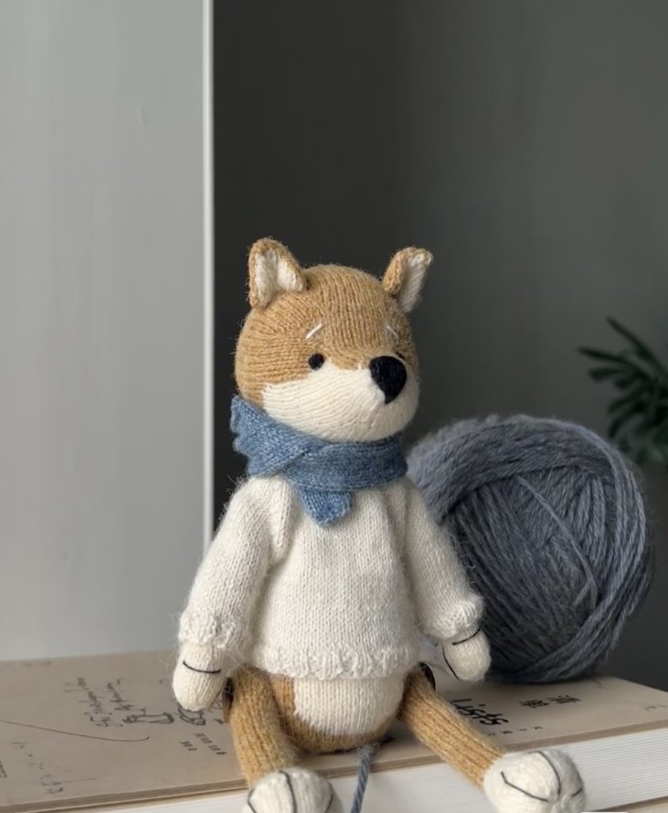 Check out this super cute hand-knitted dog! It’s made with love by hand, wearing stylish outfits like a green cable-knit jacket and a grey scarf, or a cozy white sweater with a blue scarf. From being a work in progress to a perfectly dressed little pup, every stitch is full of charm. This handmade buddy is so lively and adorable, just waiting to be your cute companion!